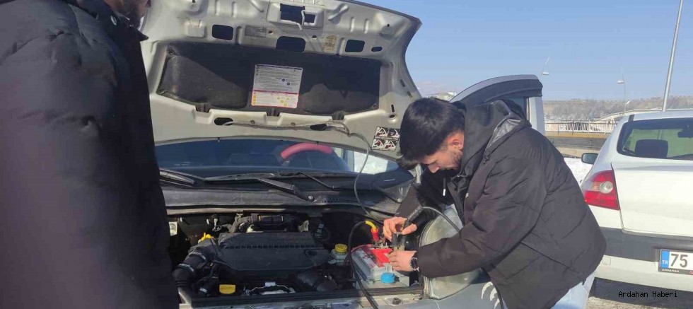 Otomobili çalışmayan Muhammet Avşar, akü kullanarak çalıştırmaya çalıştı. Avşar, ’’Dondurucu soğukların etkisiyle aracımız çalışmıyor. Ne yapsak boş, en iyisi sobanın başından ayrılmamak’’ dedi.