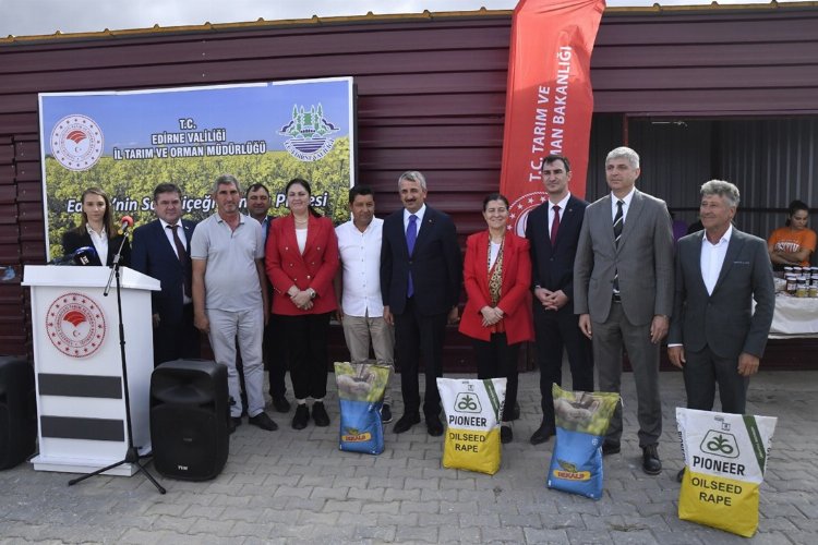 Edirne'nin sarı çiçeği kanola tohumu dağıtım töreni Edirne Valisi Yunus Sezer'in katılımıyla gerçekleşti.