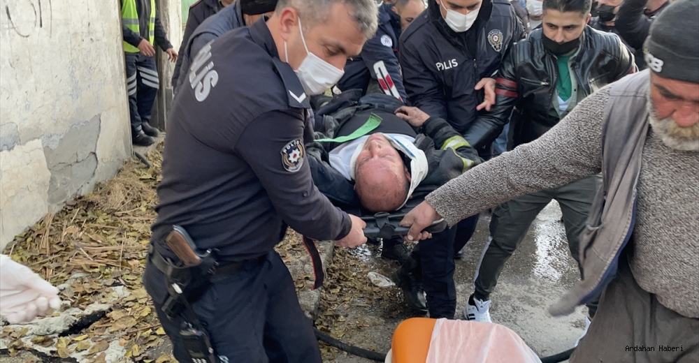 Yangına müdahalenin ardından soğutma çalışması yapan itfaiye erlerinden Cihan Ekinci, tek katlı evin çatısının kırılmasıyla zemine düştü.