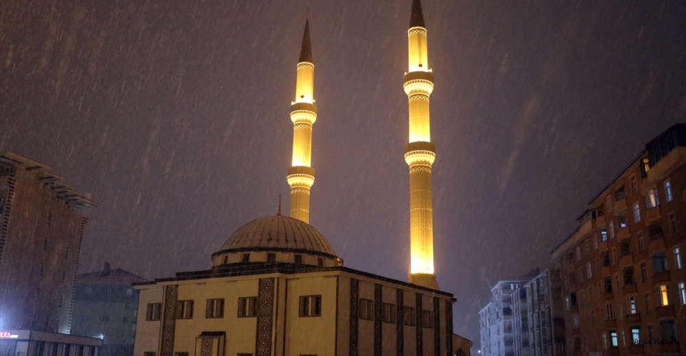 Kars'ta da aralıklarla devam eden kar yağışı gece saatlerinde de etkisini sürdürdü.