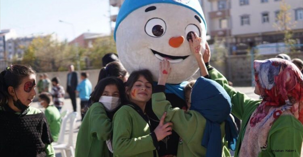 Palandöken Gençlik Merkezi Liderlerinden Fırat Ceyhan ile Halil Yazıcıoğlu koordinatörlüğünde gerçekleştirilen etkinlikte, 2017 Avrupa Gençlik Olimpik Kış Festivali'nin (EYOF) maskotu Karbeyaz, öğrencilerin ilgi odağı oldu.