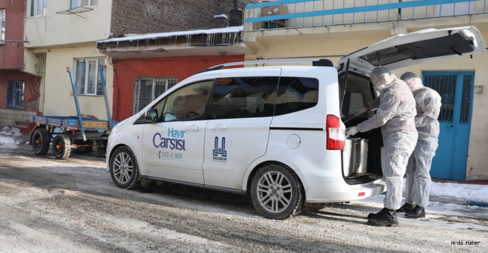 Her gün özel kıyafetler giyerek soğuk havaya rağmen ihtiyaçlıların evlerine yemek götüren görevliler, hem gönülleri ısıtıyor hem de hayır duası alıyor.