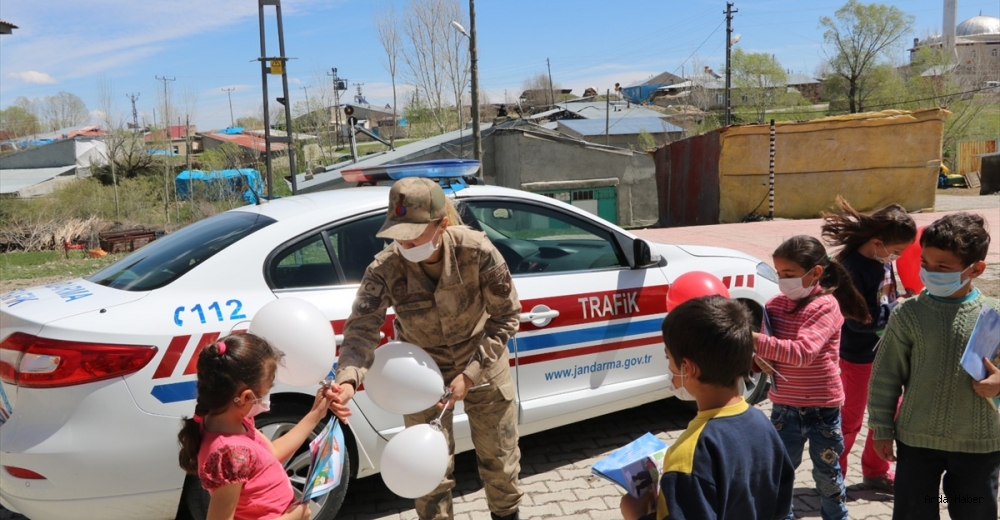 Ekipler yanlarında götürdükleri kitap, balon, boyama kalemi ve oyuncakları çocuklara hediye ederek, devriye aracından açtıkları müzikler eşliğinde oyun oynayarak çocuklarla keyifli zaman geçirdi.