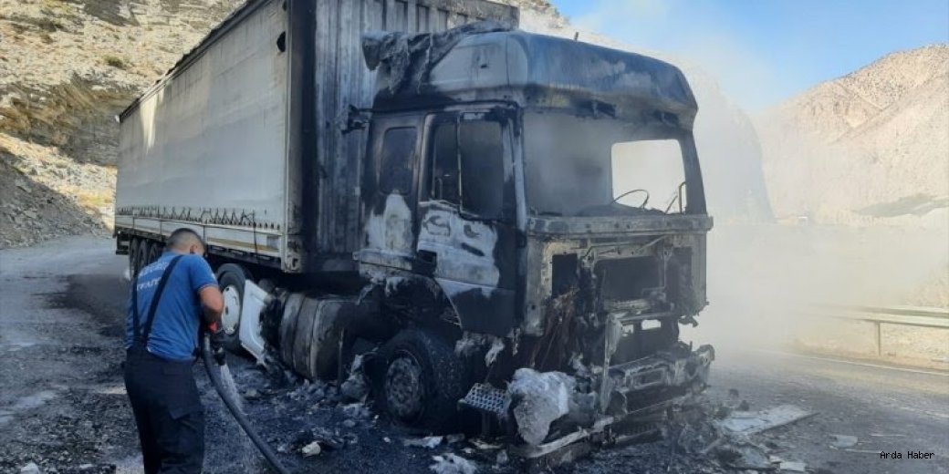 Ekiplerin müdahalesiyle söndürülen yangında, tırın çekici bölümü kullanılamaz hale geldi, kereste yüklü dorsesinde ise hasar oluştu.