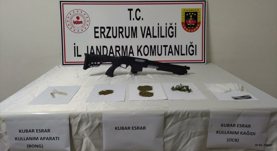 Ekipler, bir otomobil ve 3 evde yaptıkları aramada, 1 kilo 892 gram esrar, 5 uyuşturucu içme aparatı ile 2 ruhsatsız av tüfeği ele geçirdi.