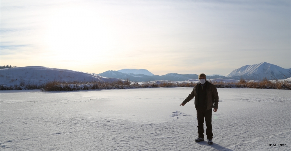 Bölgede yaşayan Bayram Yücel, "Aşırı soğuklardan dolayı gölün yüzeyi tamamen buz tutmuş durumda. Yazın derin olduğu için giremediğimiz gölün üzerinde şu anda çok rahat şekilde geziyoruz." dedi.