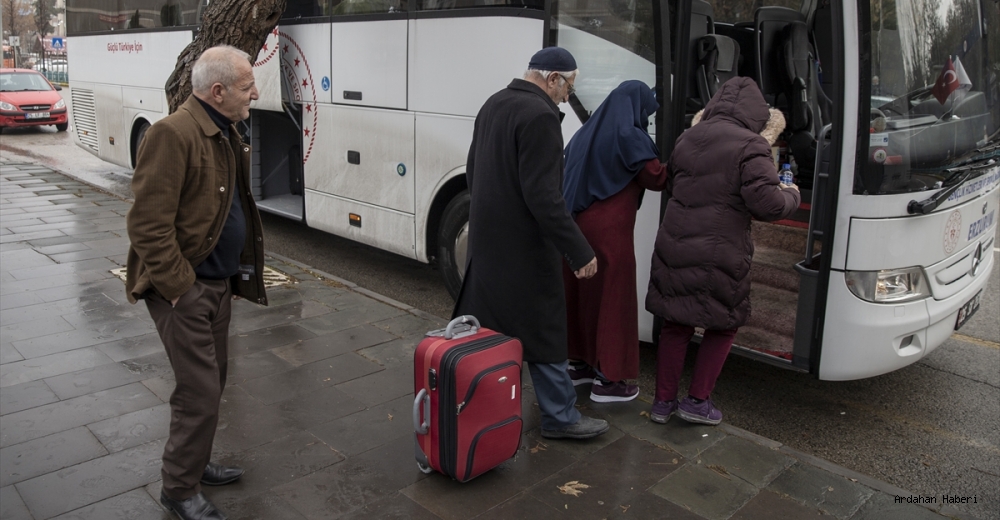 Erzurum Lisesi önünde bir araya gelen aileler, daha sonra otobüslerle havalimanına götürüldü.