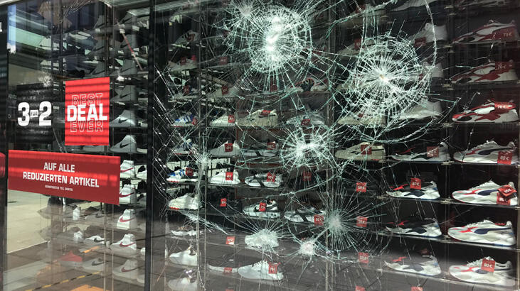 Çok sayıda mağazanın camlarının kırıldığı belirtilen açıklamada, yağmalamaların da yaşandığı ifade edildi.
