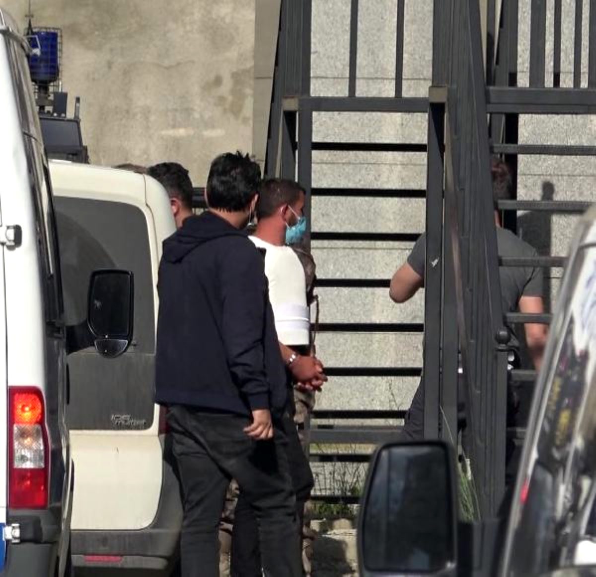 ERZURUM Palandöken Devlet Hastanesi bahçesinde 1 kişinin ölümü 6 kişinin yaralanmasıyla sonuçlanan silahlı saldırının şüphelileri adliyeye sevk edildi. Polis, adliye önünde geniş güvenlik önlemi alırken, 8 kişiye çelik yelek giydirildi.