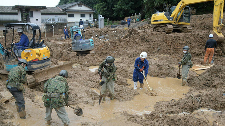 Japonya’nın Kyushu bölgesindeki Kumamoto ve Kagoshima eyaletlerinde başta olmak üzere geçtiğimiz hafta cumartesi etki gösteren şiddetli yağış sel ve toprak kaymalarına neden olmuş, en az 12 bin evin kısmi ya da tamamen zarar gördüğü açıklanmıştı. Felaketin ardından bölgeye gönderilen 10 bin Japonya Öz Savunma Kuvvetleri (SDF) personelinin sayısı, bilançonun ağırlaşmasıyla 2 katına çıkarılmıştı.