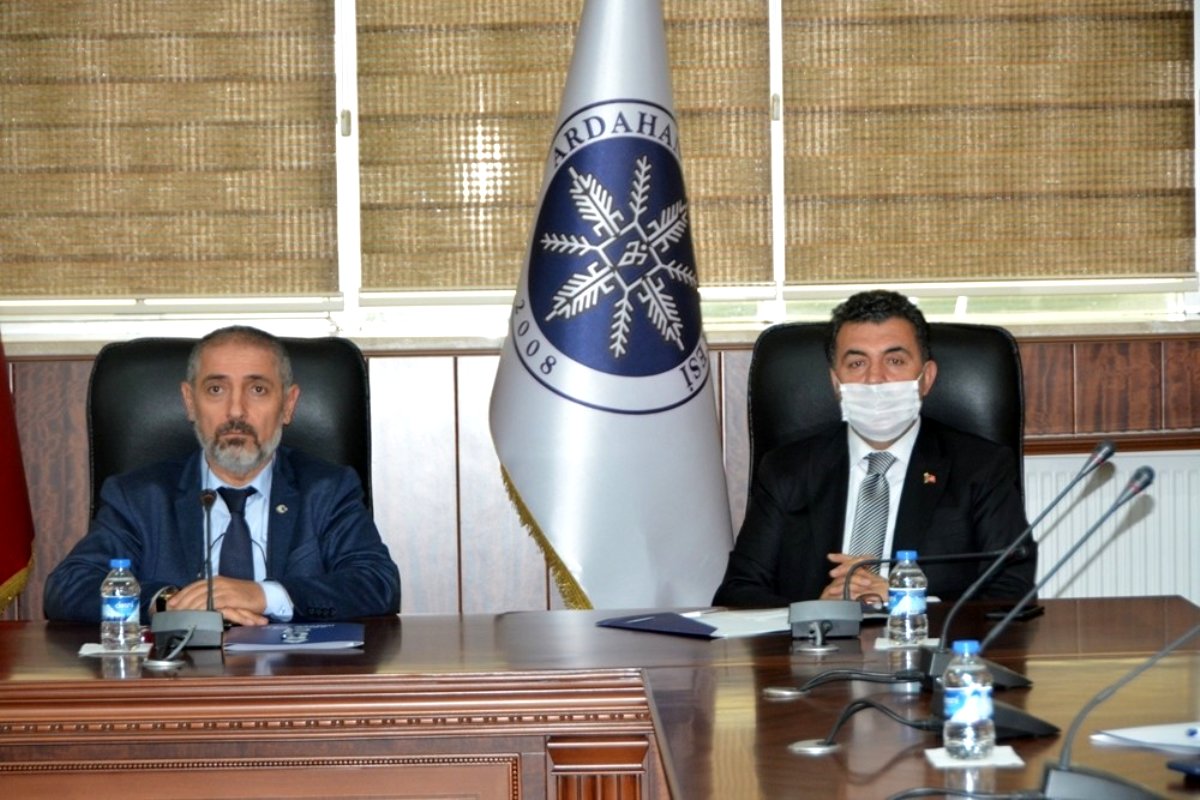 Ardahan Üniversitesi toplantı salonunda, Ölçme, Seçme ve Yerleşme Merkezi 2020 YKS sınavı 27-28 Haziran tarihinde yapılacak olan sınavda uyulacak kurallar, dikkat edilecek hususlar ve alınacak tedbirler gözden geçirildi.