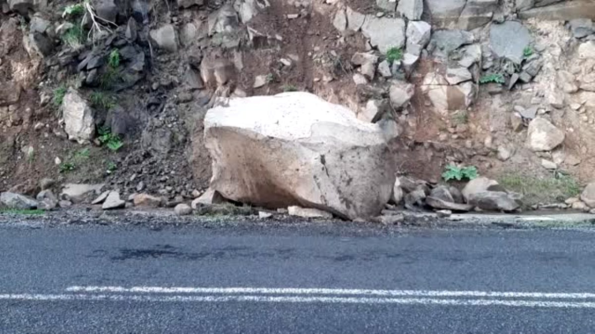 Ardahan-Ardanuç kara yolu kenarına irili ufaklı kaya parçaları düştü.