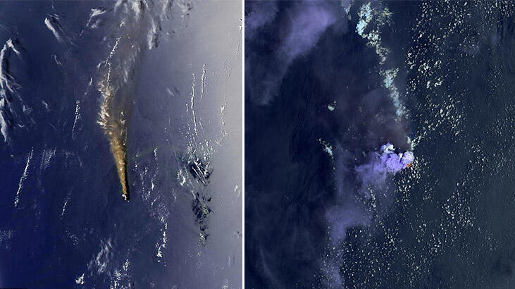 Amerikan Havacılık ve Uzay Dairesi (NASA) yaşanan volkanik patlamaların boyutunu gözler önüne sermek için bölgeyi yörüngedeki uyduları ile görüntüledi.