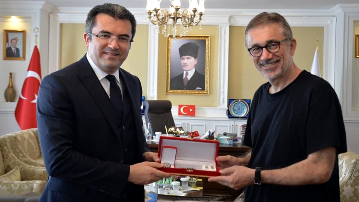 Ziyaret sonunda Vali Okay Memiş Nuri Bilge Ceylan'a Oltu taşı tesbih hediye etti.
