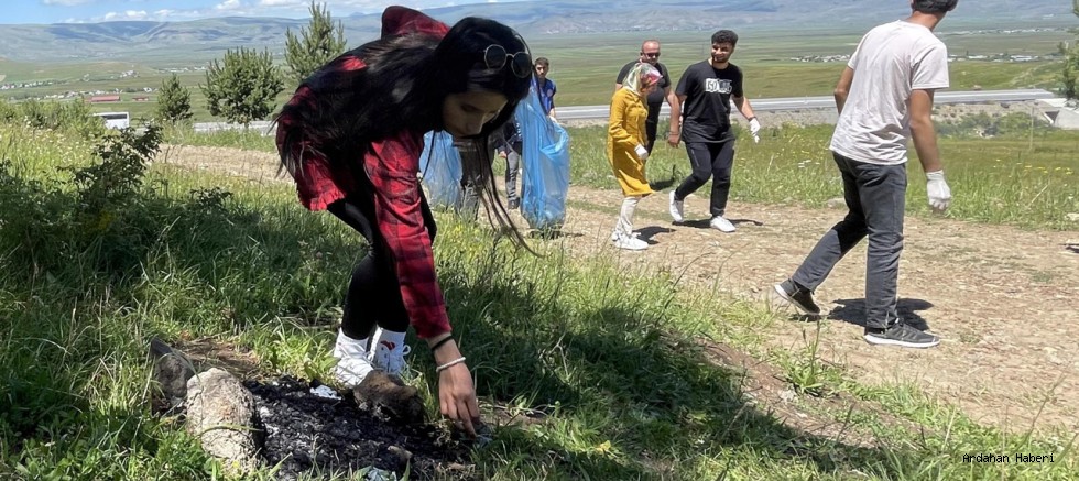 Doğanın korunması ve çevrenin temiz tutulması amacıyla bir araya gelen 40 kişilik grup, Ardahan-Göle kara yolunun Tepeler Köyü mevkisindeki Kent Ormanı'nda temizlik yaptı.