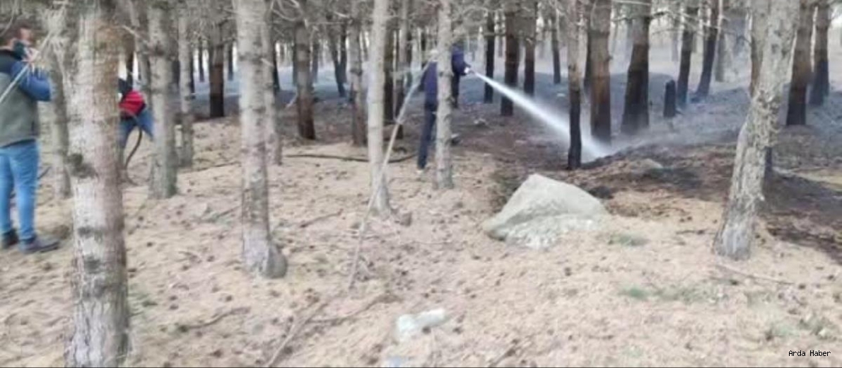 ARDAHAN'ın Göle ilçesinde ormanlık alanda yangın çıktı. Uzun bir çalışmanın sonunda yangın söndürüldü.