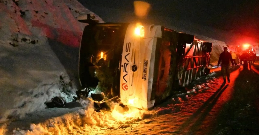Iğdır-Ankara seferi yapan Aras Turizm firmasına ait 34 DMZ 566 plakalı yolcu otobüsü, Kars-Erzurum kara yolunun Sarıkamış ilçesi Mescitli köyü mevkisinde kar nedeniyle devrildi.