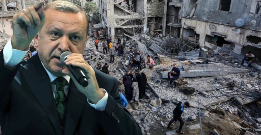 Dubai'de düzenlenen Dünya Hükümetler Zirvesi'nde konuşan Cumhurbaşkanı Erdoğan, İsrail'in Gazze'deki katliamına ilişkin çarpıcı değerlendirmelerde bulundu. Türkiye'nin barış için garantör ülke olmaya hazır olduğunu ifade eden Erdoğan, bunun için de İsrail'in bağımsız Filistin devletinin varlığını kabul etmesi gerektiğini belirtti.