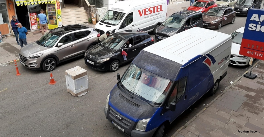 Ardahan'da bir esnaf, çamaşır makinesi ile düğün konvoyunun önünü keserek damattan bahşiş aldı.