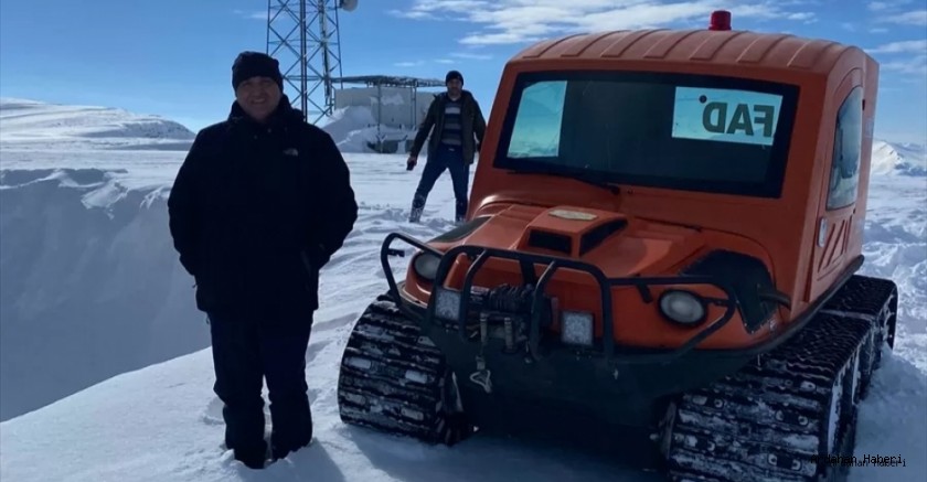 Merkeze bağlı Bağdeşen köyünde paletli araca alınan arıza ekipleri, karla kaplı dağları aşıp sorun yaşanan vericiye ulaştı.