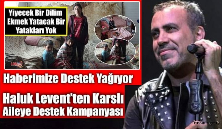 Kars'ın Arpaçay İlçesine bağlı Aydıngün (Kızılverana) Köyü'nde 6 ay önce İstanbul'dan geçim sıkıntısı nedeniyle göç eden 2 çocuklu Yılgın ailesinin dün yapmış olduğumuz haberle birlikte Türkiye'nin her noktasından yardımsever duyarlı insanların yardımda bulunma talepleri çığ gibi büyümeye devam ediyor. Öte yandan bir iyilik abidesi olan ünlü sanatçı Haluk Levent sosyal medya (twitter) hesabından "Kars Ahbap, Haydi Arkadaşlar" sloganıyla yardıma muhtaç aile destek kampanyasını başlattı. Kaynak: Haberimize destek yağıyor