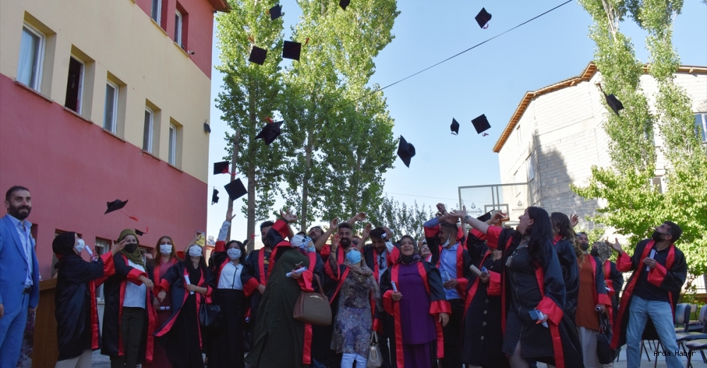 Hakkari'de, "Mesleki Eğitim Merkezi Diploma Telafi Programı" kapsamında telafi eğitimlerine katılarak lise eğitimini tamamlayan yaşları 30 ila 60 arasında değişen öğrenciler için mezuniyet programı düzenlendi.