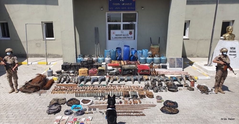 Sığınaklarda 200 kilogram amonyum nitrat, RPG-7 roketatar, biksi makineli tüfek namlusu ve mekanizması,140 doçka mühimmatı, 609 biksi mühimmatı, 4 AK-47 kalaşnikof piyade tüfeği şarjörü, 3 top elektrik kablosu, hücum yeleği, 324 uçaksavar mühimmatı, 4 küçük el telsizi, 1245 AK-47 kalaşnikof mühimmatı, kanas tüfeğine ait boş şarjör, 6 jeneratör, 2 güneş paneli, 24 hilti, 12 güç kaynağı, 3 sinyal güçlendirici, kapalı kutu içinde 3 patlatma devresi, 20 fünye, siren, 9 büyük tüp, küçük tüp, 19 çift ayakkabı, 71 koli bandı, spiral kesme makinesi, 2 akü, 10 örgütsel kitap, boş siyah çanta, siyah renk düdük, 12 büyük pil, lehim kalemi, 8 hilti demiri, 3 hilti kemeri, el arabası, kazma, balyoz demiri, keski, 3 battaniye, bahçe teli, 3 top bez, 4 çaydanlık, 4 tepsi, mangal ızgarası, semaver, 3 kazan, 7 jelikan bidon, 2 metre uzunluğunda 3 çadır demiri, 11 jilet ve 2 elektrik bandı ele geçirildi.