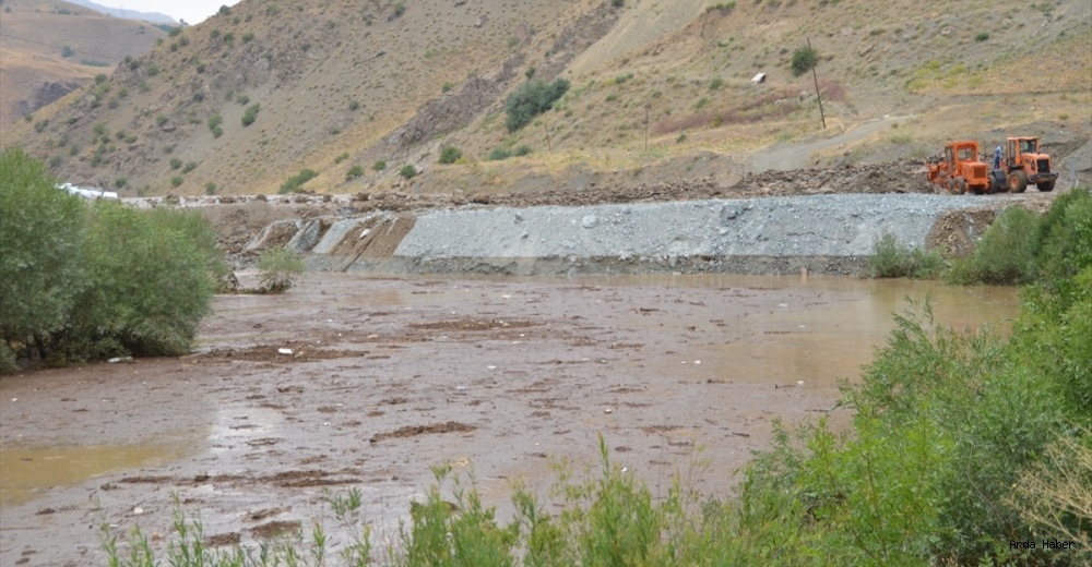 Yüksekova ilçesine bağlı Akalın Mahallesi yakınındaki derenin taşması sonucu kapanan yolun açılması için de ekipler çalışma yürütüyor.
