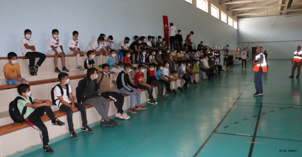 İl Afet ve Acil Durum Müdürlüğü (AFAD) ekiplerince ilçedeki spor salonunda verilen eğitimde katılımcılar, afetlerde hayati önem taşıyan konularda bilgilendirildi.
