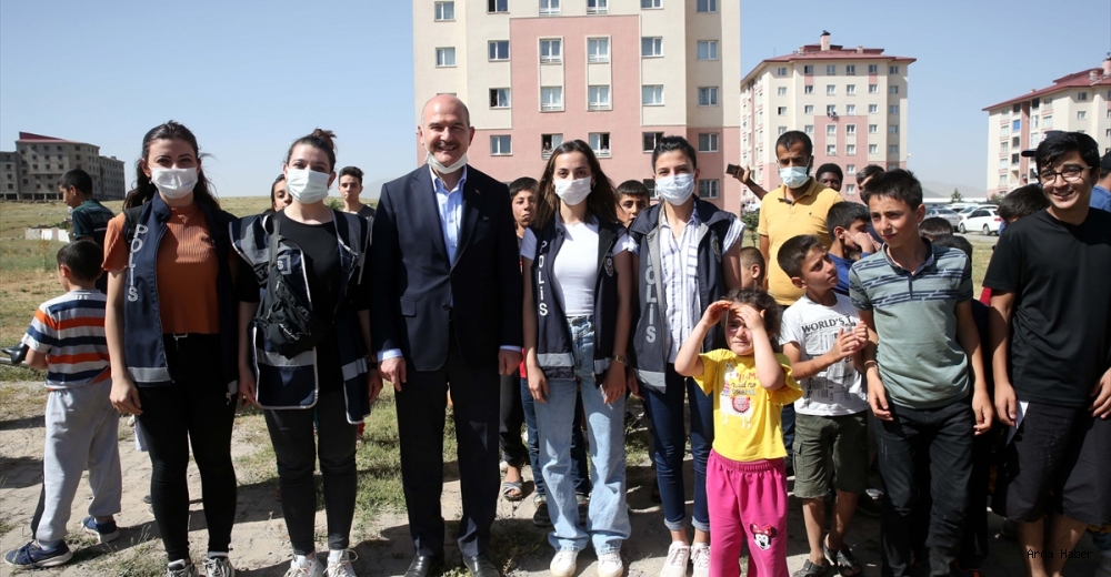 Merkeze gelişi sırasında yol üzerinde karşılaştığı çocuklara oyuncak hediye eden ve fotoğraf çektiren Bakan Soylu, Vali Çağatay'dan merkez hakkında bilgi aldı.