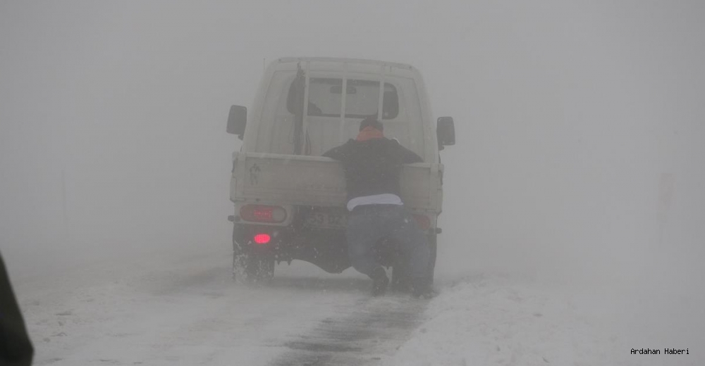 Ardahan-Artvin karayolu Sahara geçidinde buzlanma dolayısıyla araçlar yollarda mahsur kaldı. Gazeteciler, kış lastiği bulunmadığı için yolda patinaj çeken araçları iterek yolun açılmasını sağladı. Bazı araçlar buzlu yolda kayarak durabildi.