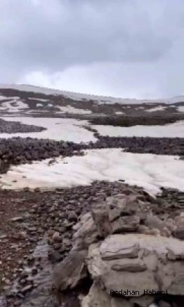 Ardahan'ın Çıldır ilçesinde bulunan 3170 rakımlı Kısır Dağı'nın ağustos sıcağında bile karları erimiyor. Ziyaretçiler, dağın eteklerindeki kar ve soğuk sularıyla doğal soğuk hava deposunu andıran manzaraya şaşkınlıkla bakıyor.