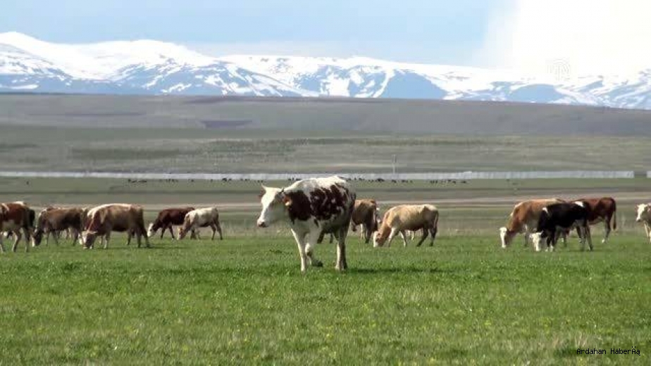 Türkiye'de en uzun kış mevsiminin sürdüğü Kars'ın Sarıkamış ilçesinde karların erimesiyle yeşeren meralarda büyük ve küçükbaş hayvanlar otlamaya başladı.