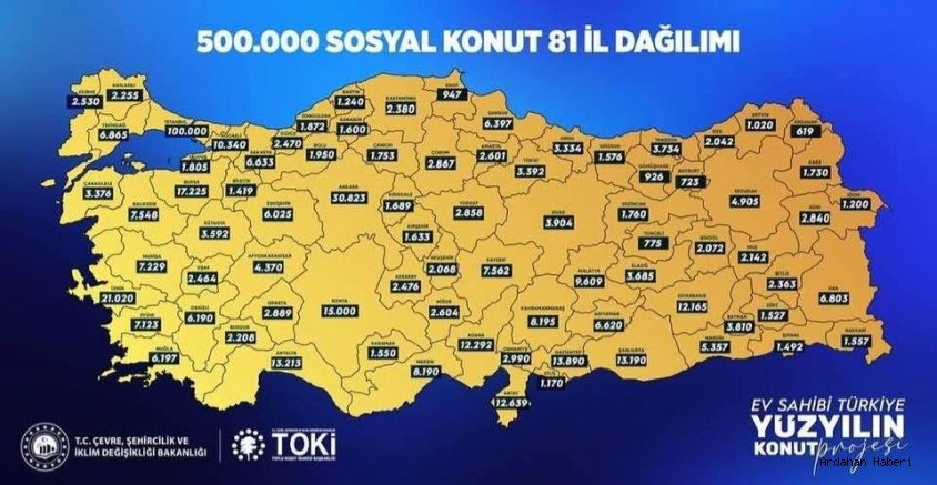 Çevre, Şehircilik ve İklim Değişikliği Bakanı Murat Kurum, “Yüzyılın Konut Projesi” kapsamında yapılacak 500 bin sosyal konutun 81 ildeki dağılımını açıkladı.