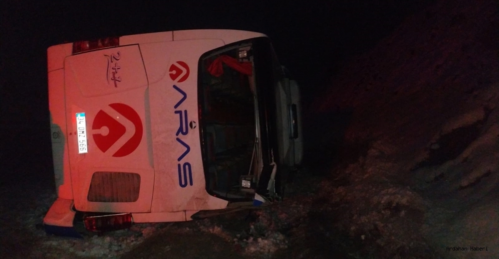 Iğdır-Ankara seferi yapan 34 DMZ 566 plakalı yolcu otobüsü, kar ve sisin etkili olduğu Kars-Erzurum kara yolunun Mescitli köyü mevkisinde devrildi.