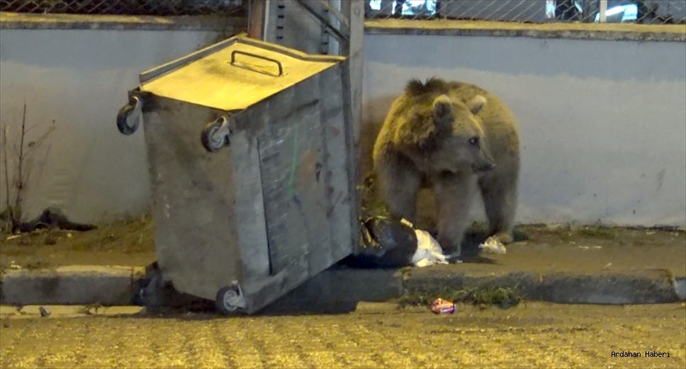 Çöpteki yiyeceklerle karnını doyuran bozayı daha sonra ormanlık alana gitti.