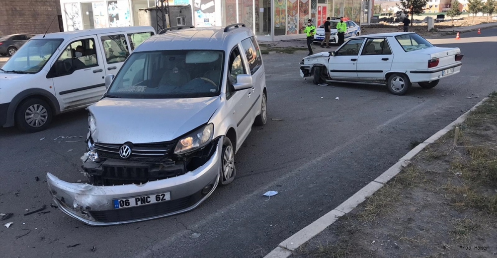 Kars'ta hafif ticari araç ile otomobilin çarpması sonucu biri bebek 4 kişi yaralandı.