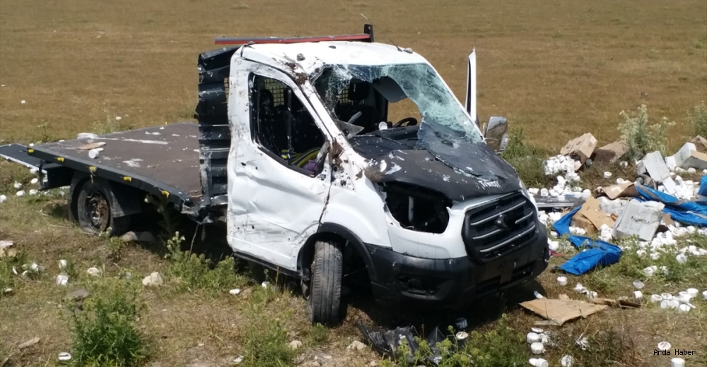 Selim Uluç idaresindeki kozmetik ürünleri yüklü kamyonet, Kars-Digor kara yolunun Hanlar Geçidi mevkisinde devrildi.