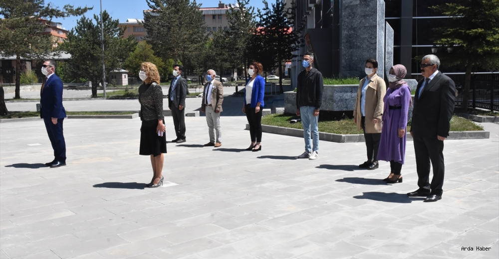 Çalışanların da katıldığı törende yeni tip koronavirüs (Kovid-19) önlemleri alınarak saygı duruşunda bulunuldu ve İstiklal Marşı okundu.