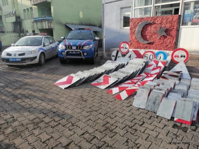 Kars- Erzurum, Kars- Ardahan ve Kars- Iğdır kara yolu üzerinde trafik işaret ve levhalarının çalındığı bilgisin alan Selim İlçe Jandarma Komutanlığı ekipleri çalışma başlattı.