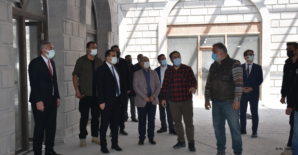 Kars Valisi ve Belediye Başkan Vekili Türker Öksüz, yöresel gıda, hediyelik eşya ve turistik ürünlerin satılacağı geleneksel Türk mimarisine uygun inşa edilen Bedesten Projesi ve Kars Çayı'nda ıslah çalışmalarını inceledi.