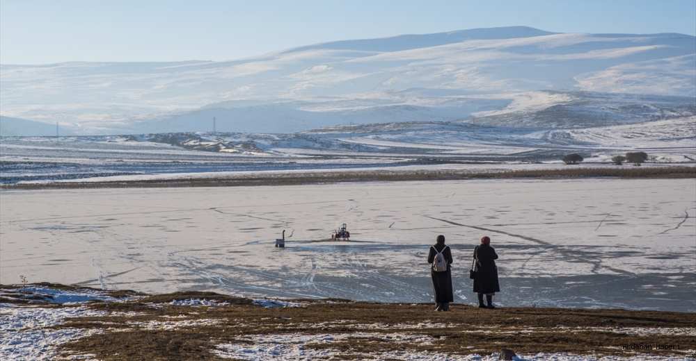 Tur rehberi Çiğdem Düğer, AA muhabirine, Doğu Anadolu'nun en büyük ikinci gölü Çıldır'ın bir bölümünün buz tuttuğunu ve üzerinde yürüyerek keyifli anlar yaşadıklarını söyledi.