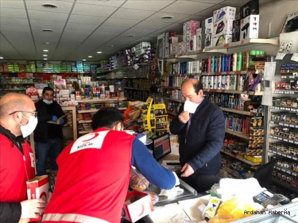 Türkiye Kızılay Derneği Çıldır temsilciliği Covid-19 la mücadele kapsamında Çıldır esnafına ücretsiz maske dağıttı