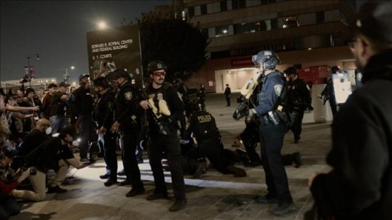 Los Angeles Polis Departmanı tarafından yapılan açıklamada, şehir merkezinde ikinci gecesine giren protestolarda çok sayıda kişinin gözaltına alındığı bildirildi. Açıklamada, bazı göstericilerin ölümcül silahla saldırı, polis memuruna mukavemet, vandalizm ve dağılmama gibi suçlamalarla gözaltına alındığı öne sürüldü.