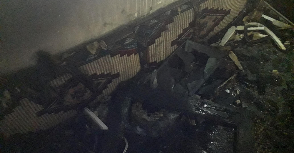 İtfaiye ekiplerince kontrol altına alınan yangında, can kaybı yaşanmazken ev kullanılamaz hale geldi.