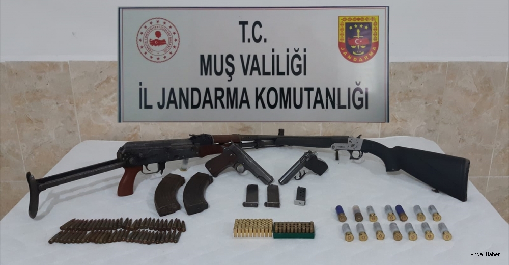 Operasyonda kalaşnikof ve bu silaha ait 2 şarjör, av tüfeği, 2 tabanca ve bu silaha ait 3 şarjör ile 24 fişek ele geçirildi.