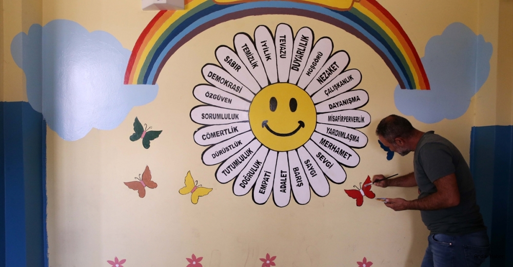 Cumhuriyet İlkokulu Müdürü Rıdvan Taşdemir ise resim alanında yeteneği olan Ballı'nın gönüllü olarak öğrencilerin daha sıcak ve renkli bir atmosferde eğitim öğretim görmelerini sağlamak amacıyla duvarlara resim çizdiğini dile getirdi.