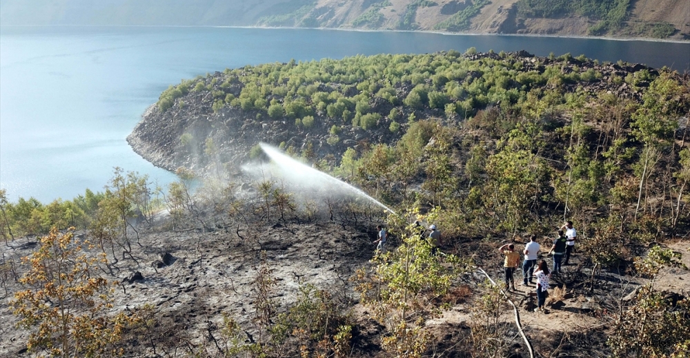 Tatvan ilçesinde 2 bin 250 rakımlı Nemrut Krater Gölü'nün yakınındaki ormanlık alanda örtü yangın çıktı.