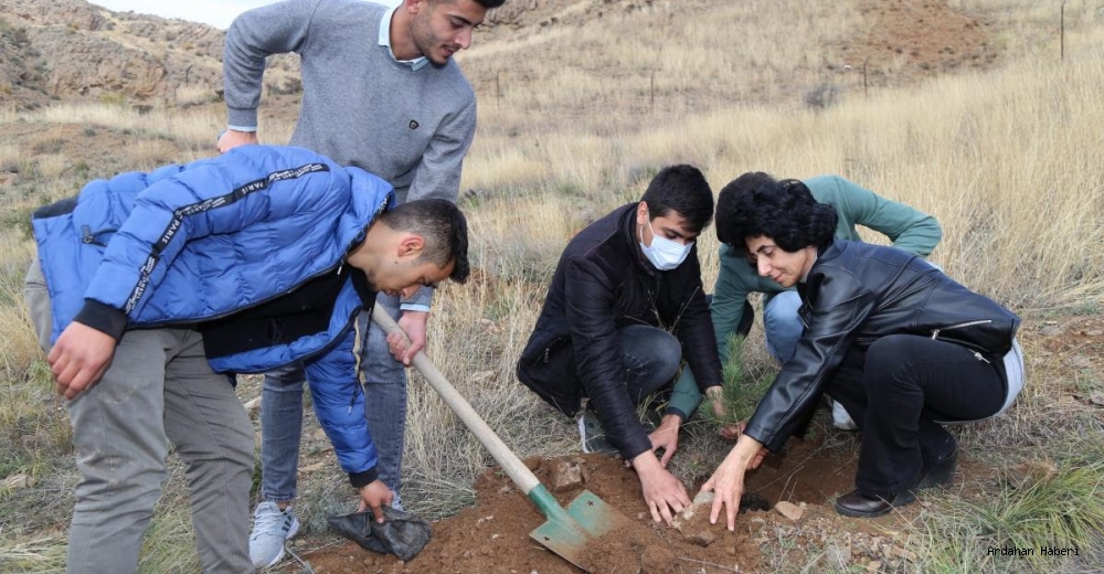 Öğrenciler, yüksekokul bahçesine fidan dikerek can suyu verdi.