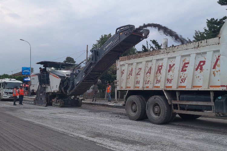 İlçede bulunan Bahattin Şeker Caddesi ve Bursa Caddelerinde ilçedeki, Bursa karayolunda ki trafik akışının ve ilçe esnafının etkilenmemesi için çalışmalarını gece sürdüren ekipler, frezeleme ve kazıma, trimer uygulaması tamamlanan kısımlarda sıcak asfalt serilimi gerçekleştiriyor.
